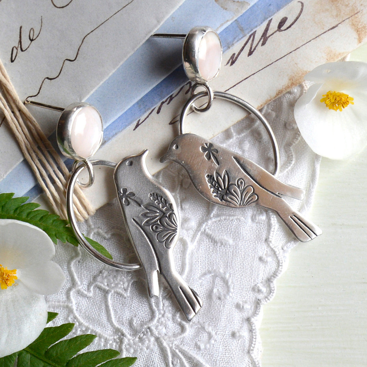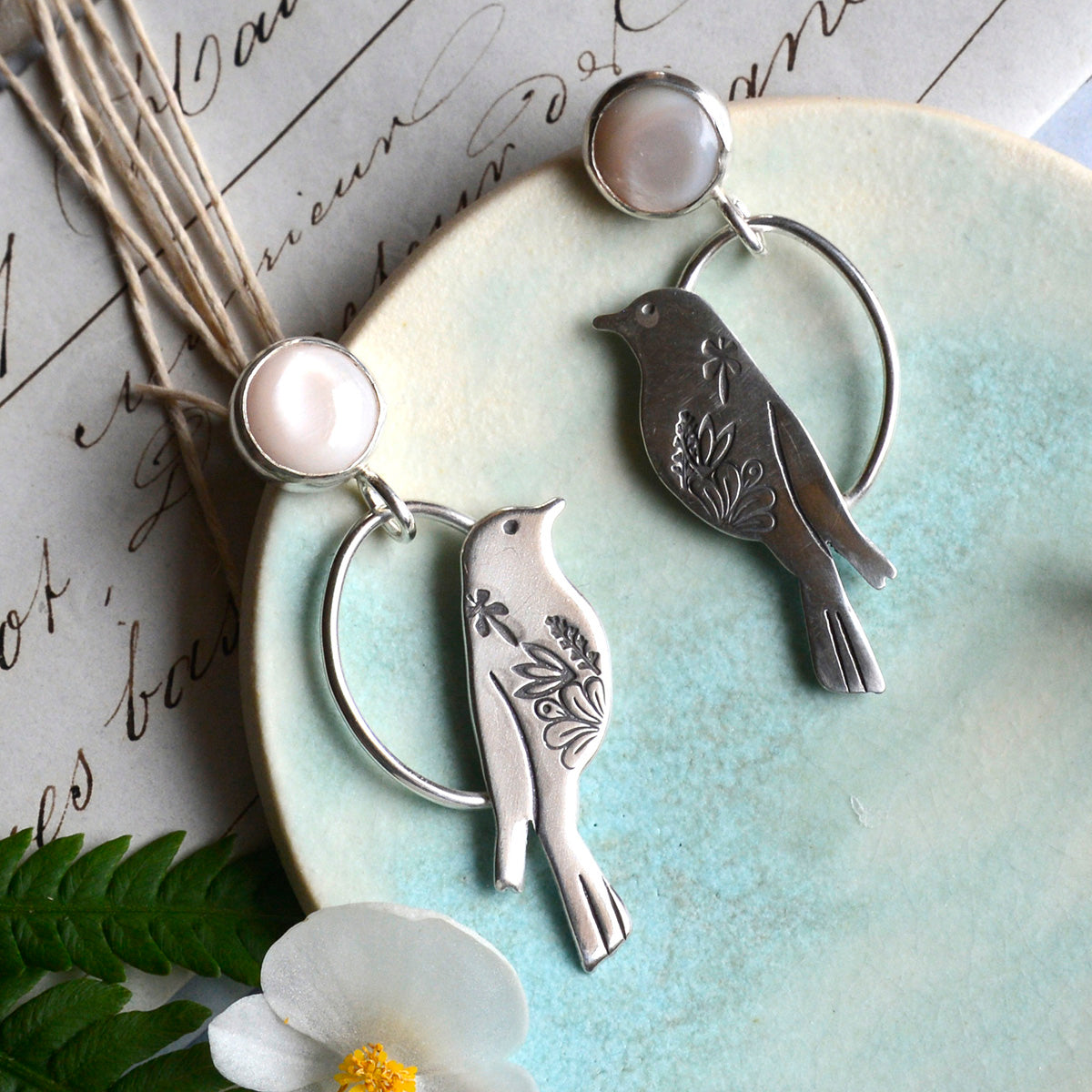 Bird Songs - Bird Earrings with Tenessee Mussel Shell